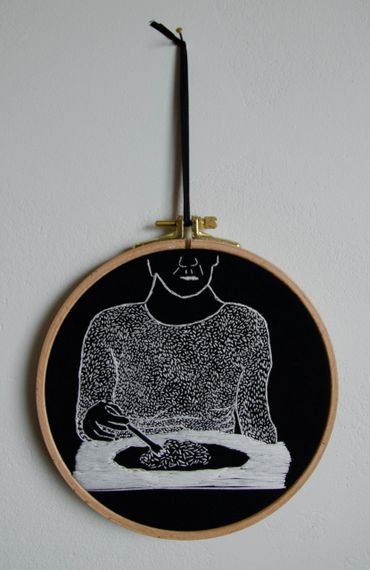 The embroidery pieces are selected from the narratives of the lonely, capturing the essence of what loneliness feels like.