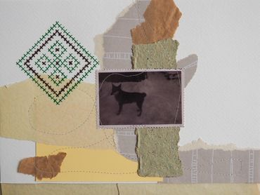 paper collage with embroidery & sewing machine stitch